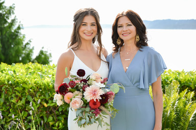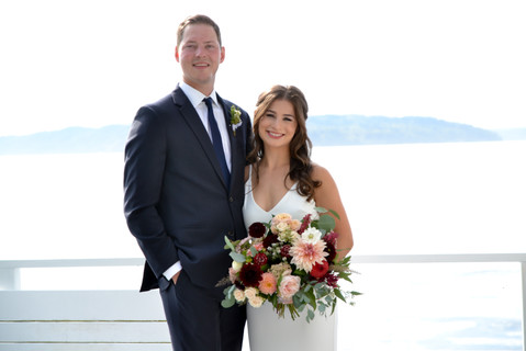 The venue was so sweet. They had family member with a community area in their neighborhood, overlooking the iconic Puget Sound. How much better could it get? There was an area to set up a reception, a lovely backdrop for the ceremony, and a bonus pathway down to the water where we could sneak away to take some photos both before the ceremony and at sunset. Even with so few attendees, every couple still needs some time to themselves on their wedding day to let it all sink in!